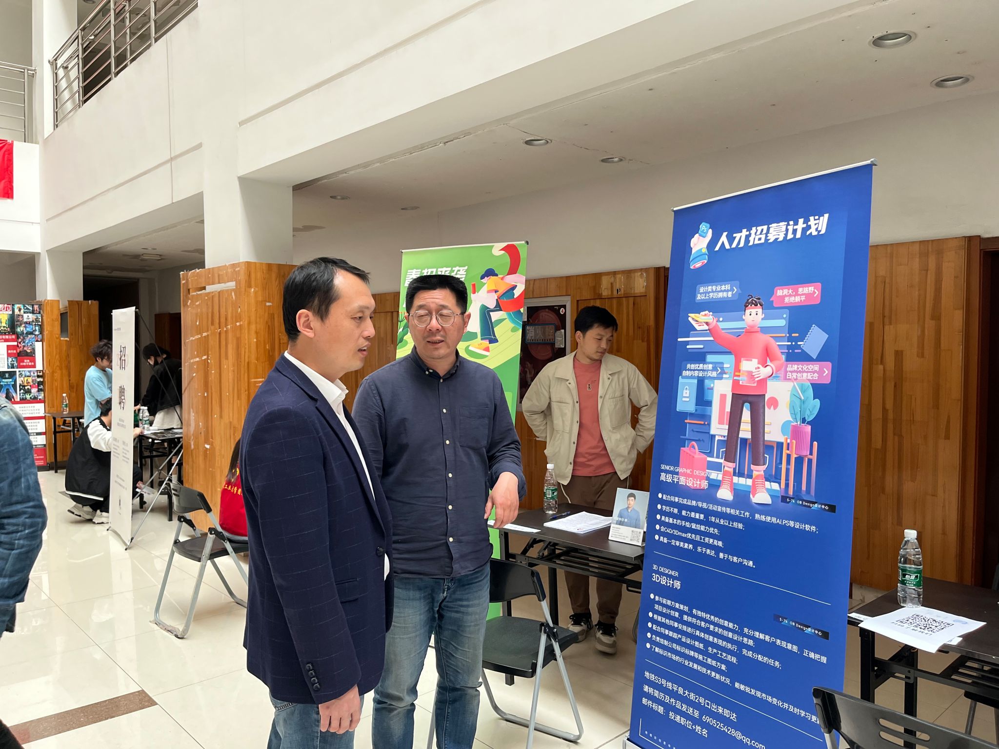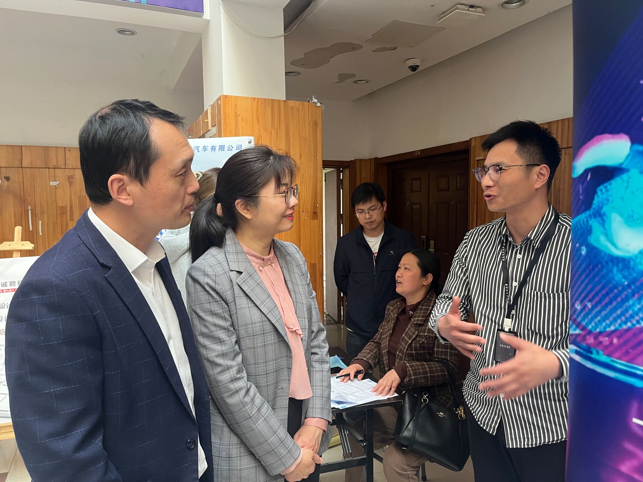 中青旅江苏国际会展有限公司、海澜之家集团股份有限公司、南京国豪装饰安装工程股份有限公司、思德展示科技股份有限公司、江苏原力数字科技股份有限公司、南京木马工业设计有限公司、苏州园科生态建设有限公司、丰传文化传播有限公司、投石科技等37家企业合力助推300多个岗位。前来应聘的毕业生积极与用人单位交流沟通,领略企业文化、了解岗位要求、明确发展目标、表达就业期许。大三员工主动咨询暑期实习需求,应聘实习岗位,锻炼自身能力。同学对招聘会提供的高质量岗位非常满意,用人单位对我院毕业生的专业技能及综合素养普遍给予了高度评价。公司党委书记周静、副书记李有林及各专业教师与前来招聘的企业负责人热情交流,感谢各单位对公司就业工作的支持,为下一步深度构筑校企合作,开拓优质就业创业实习实践基地奠定基础。